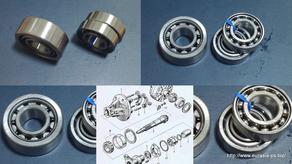 純正はローラーベアリングがインナーレース(シャフト)側に組み付けられたタイプですが、純正タイプが欠番になっているため、ローラーがアウターレース(デフ本体)側に装着されているタイプを採用しています。